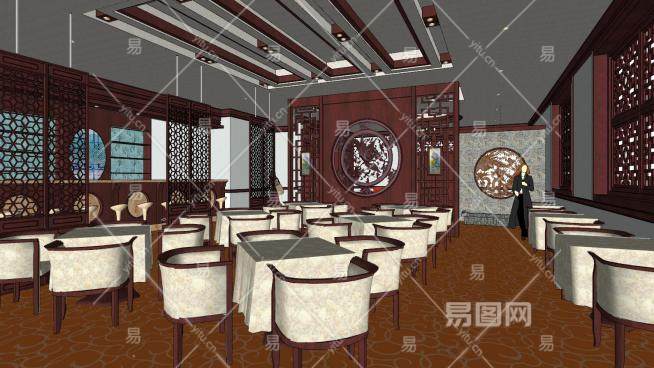 中式餐厅餐饮SU模型下载_sketchup草图大师SKP模型