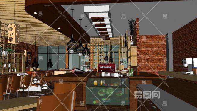 现代简约风奶茶店SU模型下载_sketchup草图大师SKP模型