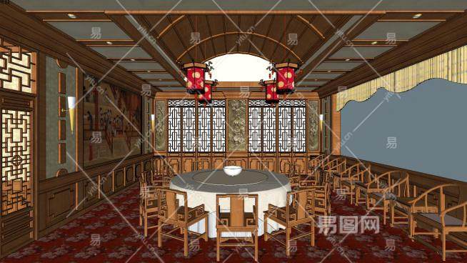中式商业餐厅su模型下载_sketchup草图大师SKP模型
