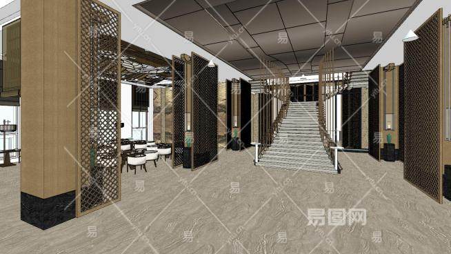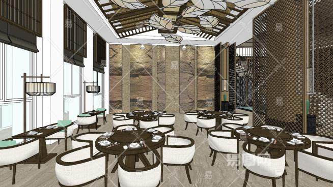新中式酒店餐厅设计SU模型下载_sketchup草图大师SKP模型