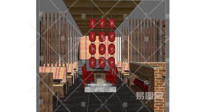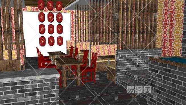 中式小型餐厅SU模型下载_sketchup草图大师SKP模型