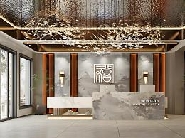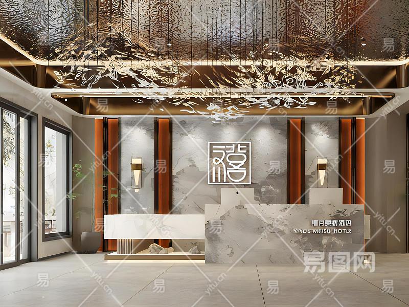 新中式酒店大堂前台模型