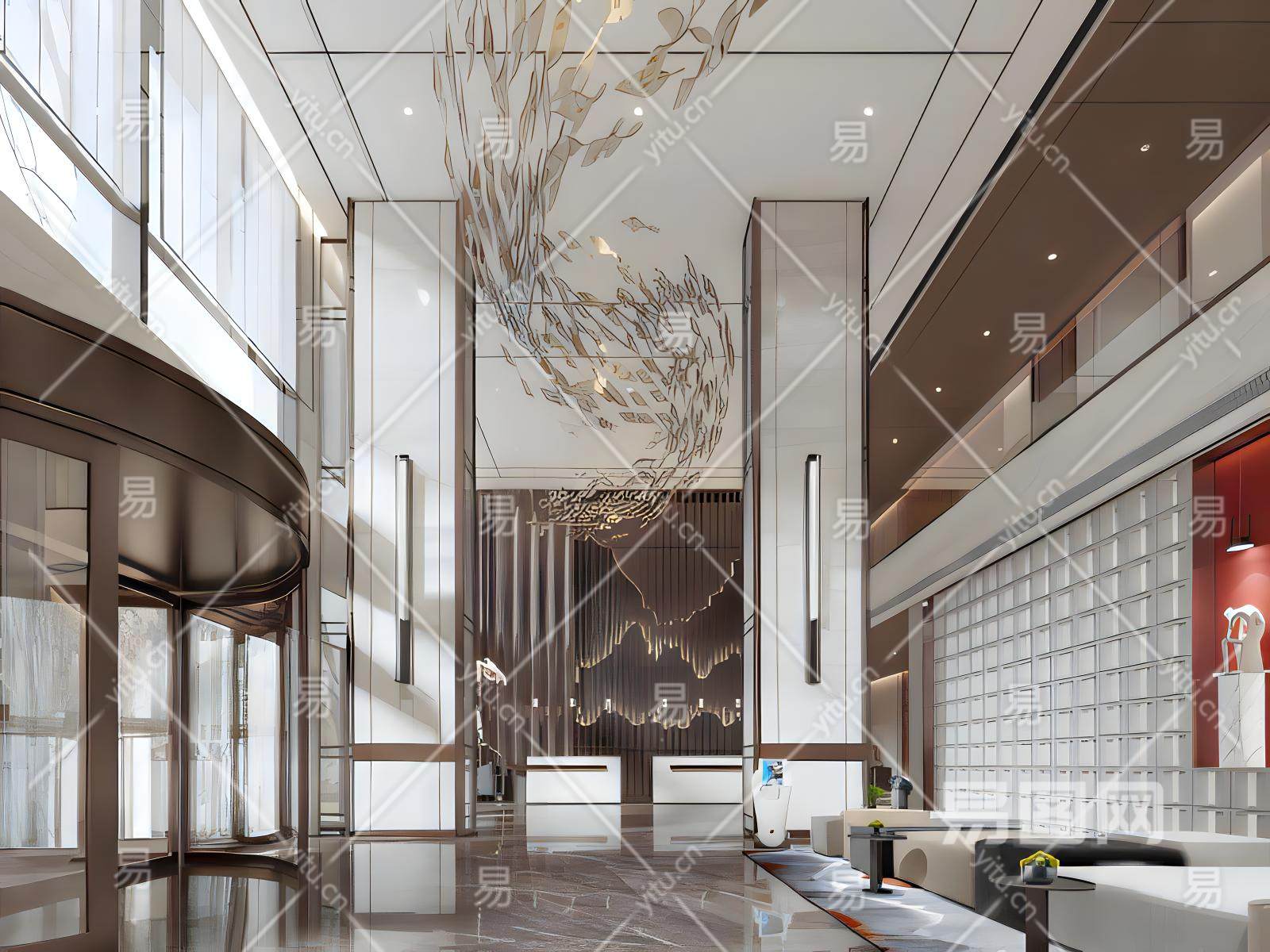 新中式酒店大厅模型