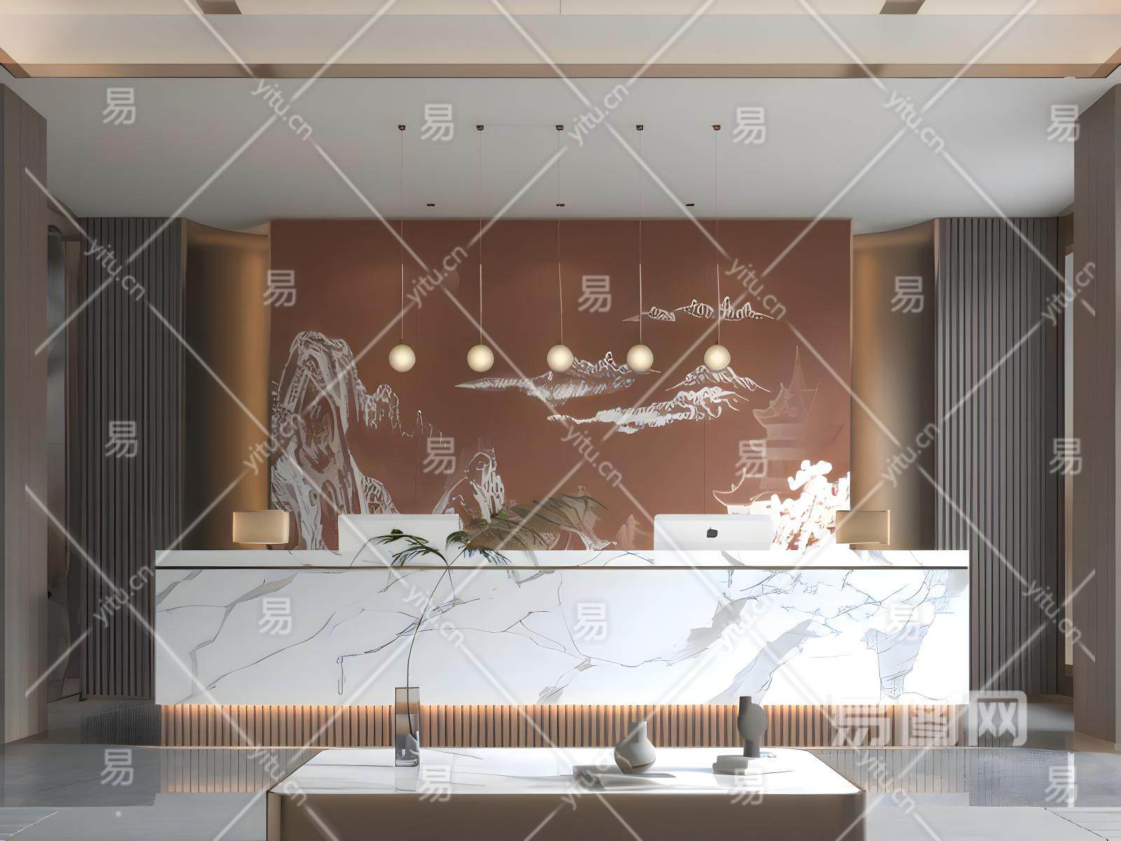 新中式酒店前台模型