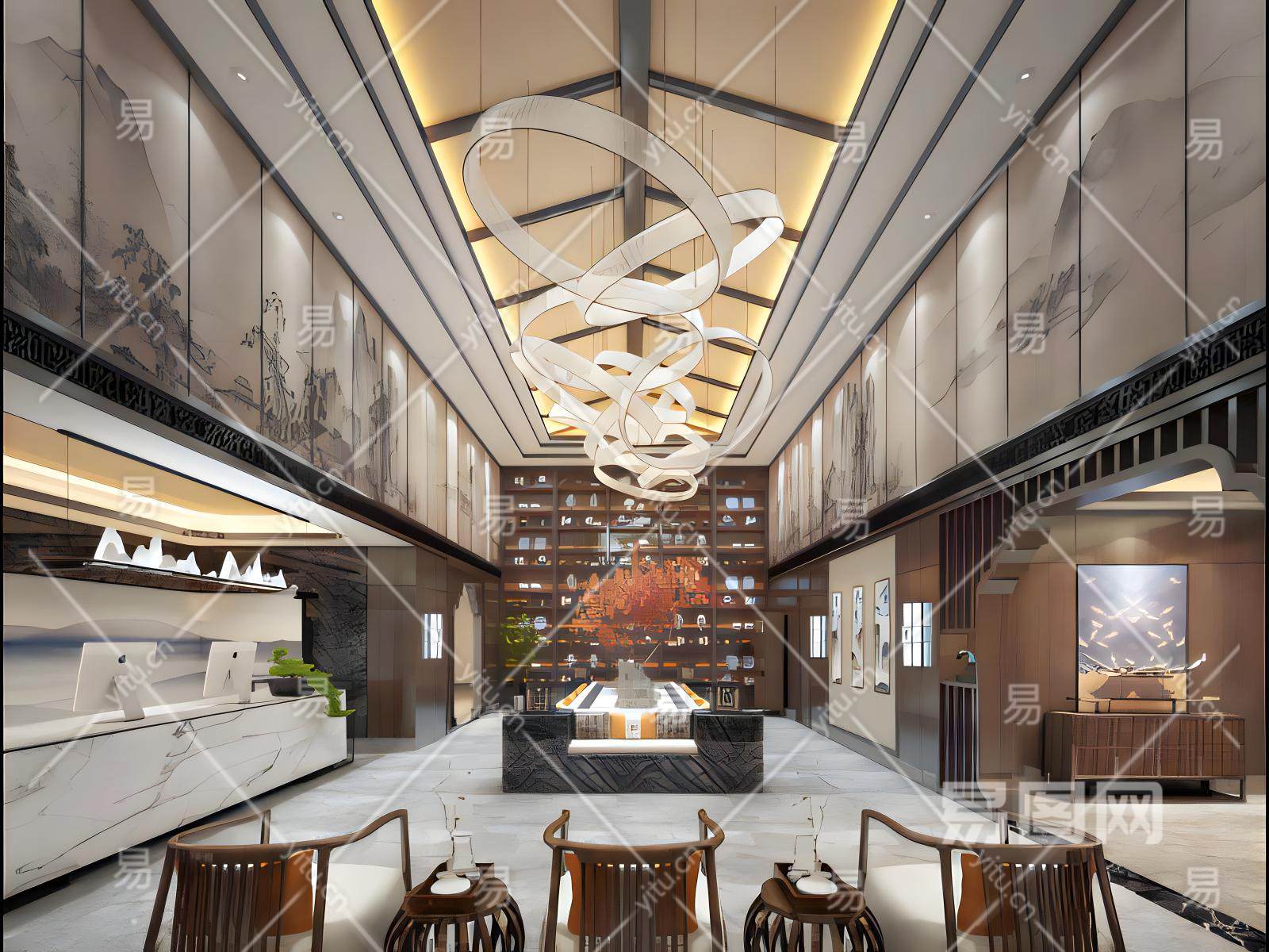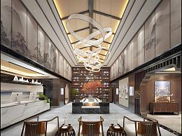 新中式酒店大堂模型