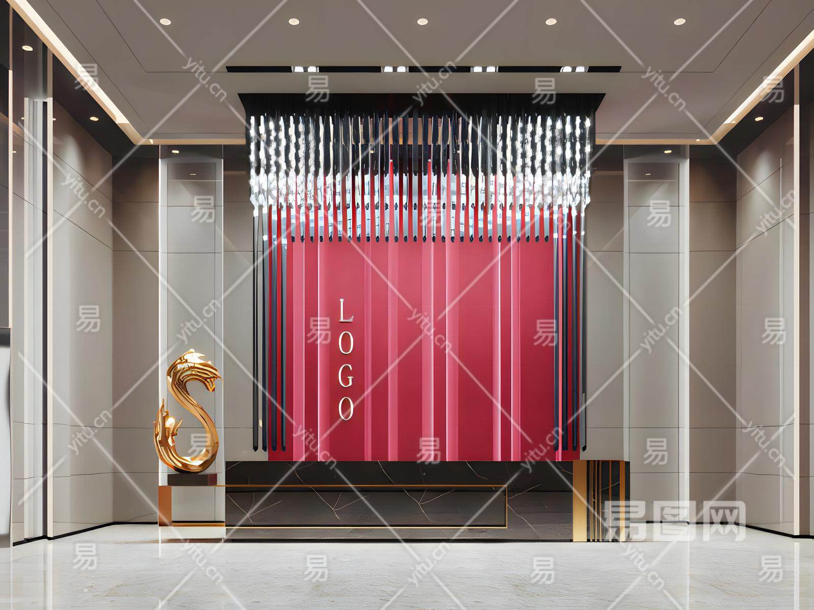 新中式前台大厅模型