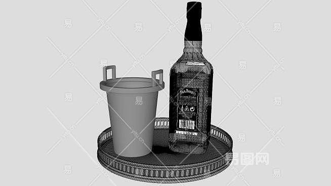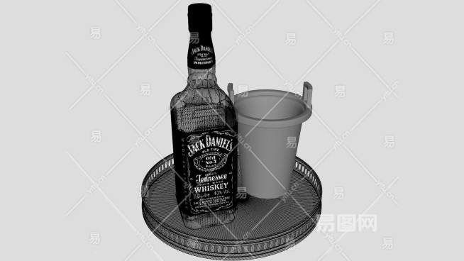 烈酒酒水和冰块桶SU模型下载_sketchup草图大师SKP模型