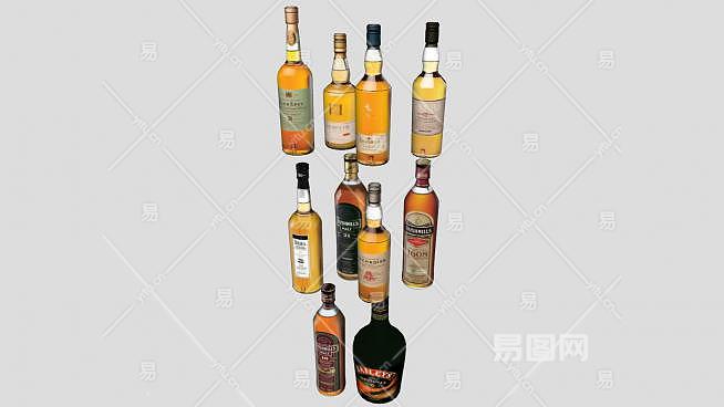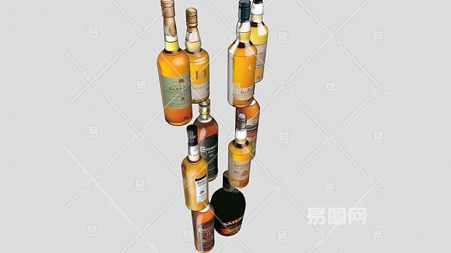 多款洋酒酒类排列SU模型下载_sketchup草图大师SKP模型