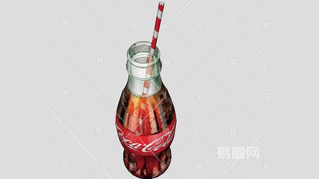 开罐的可口可乐瓶SU模型下载_sketchup草图大师SKP模型