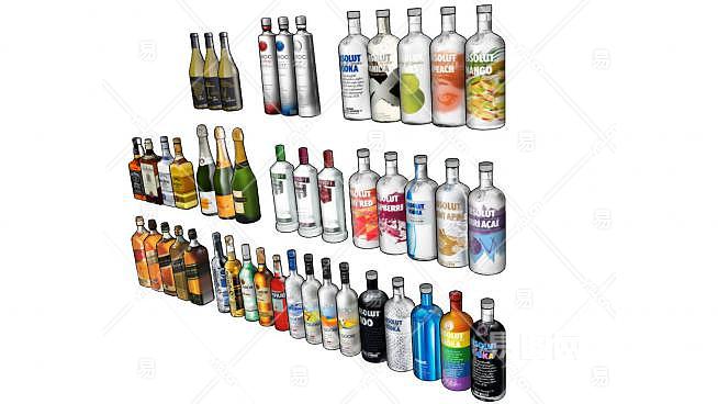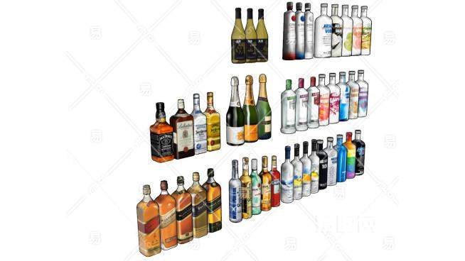 威士忌啤酒酒水分类SU模型下载_sketchup草图大师SKP模型