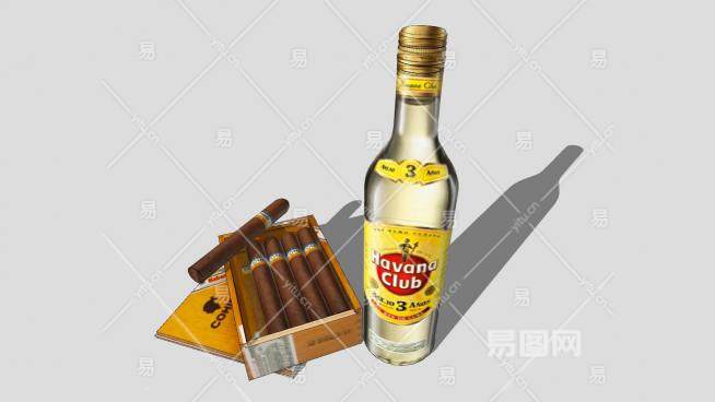 朗姆酒和科希巴雪茄SU模型下载_sketchup草图大师SKP模型