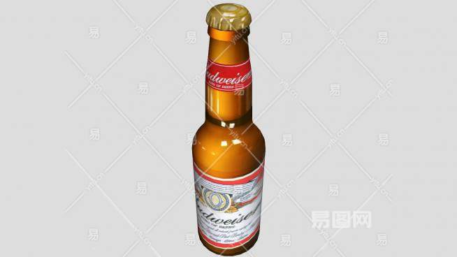 百威标签玻璃酒瓶SU模型下载_sketchup草图大师SKP模型