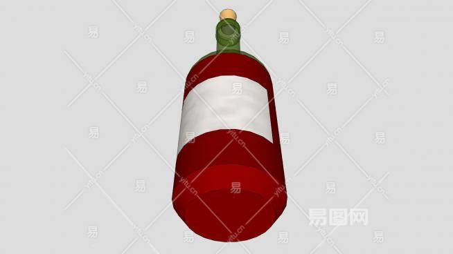 酒水酒瓶瓶塞白色标签SU模型下载_sketchup草图大师SKP模型
