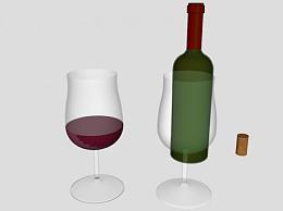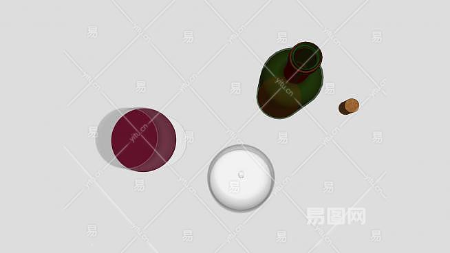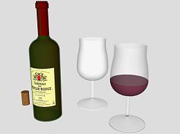 波尔多葡萄酒和酒杯酒水SU模型下载_sketchup草图大师SKP模型