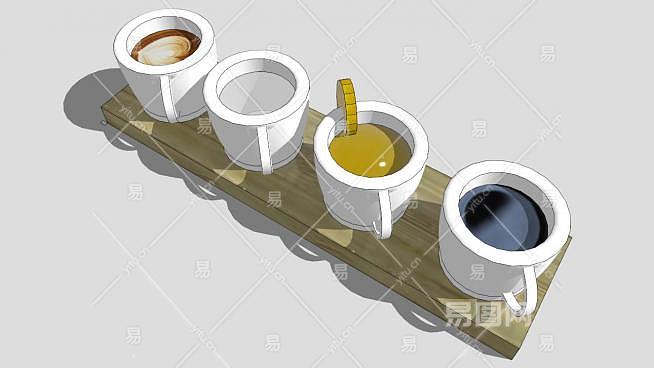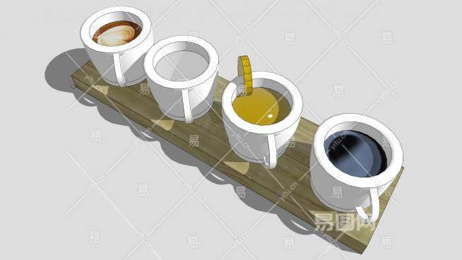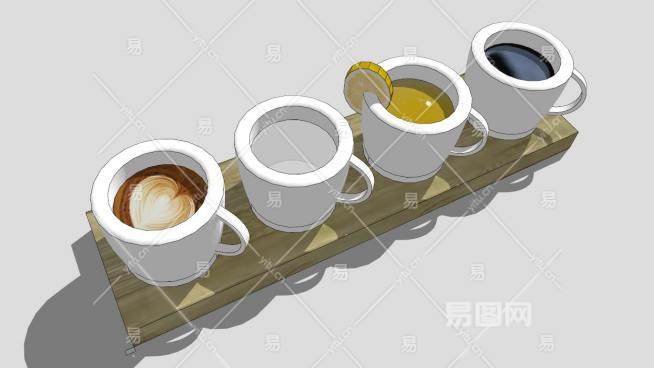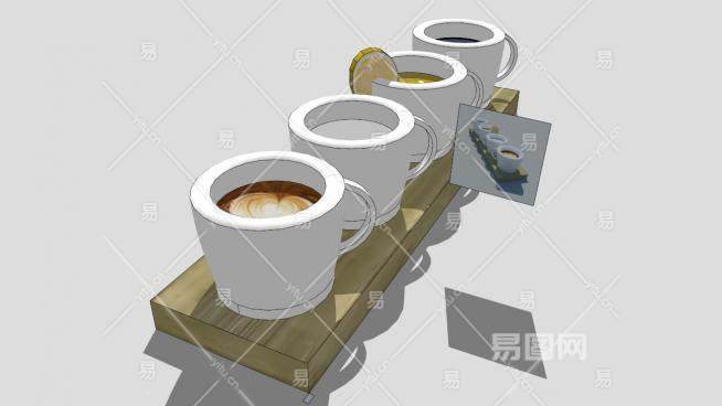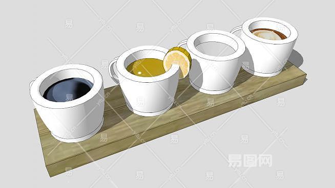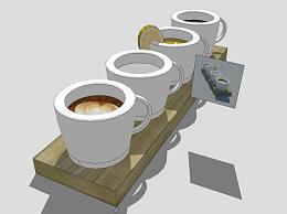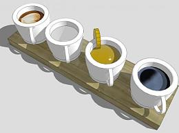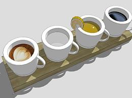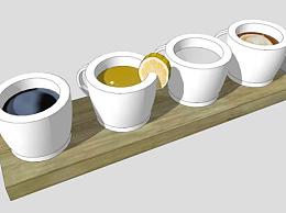 木板上的咖啡杯饮品组合SU模型下载_sketchup草图大师SKP模型