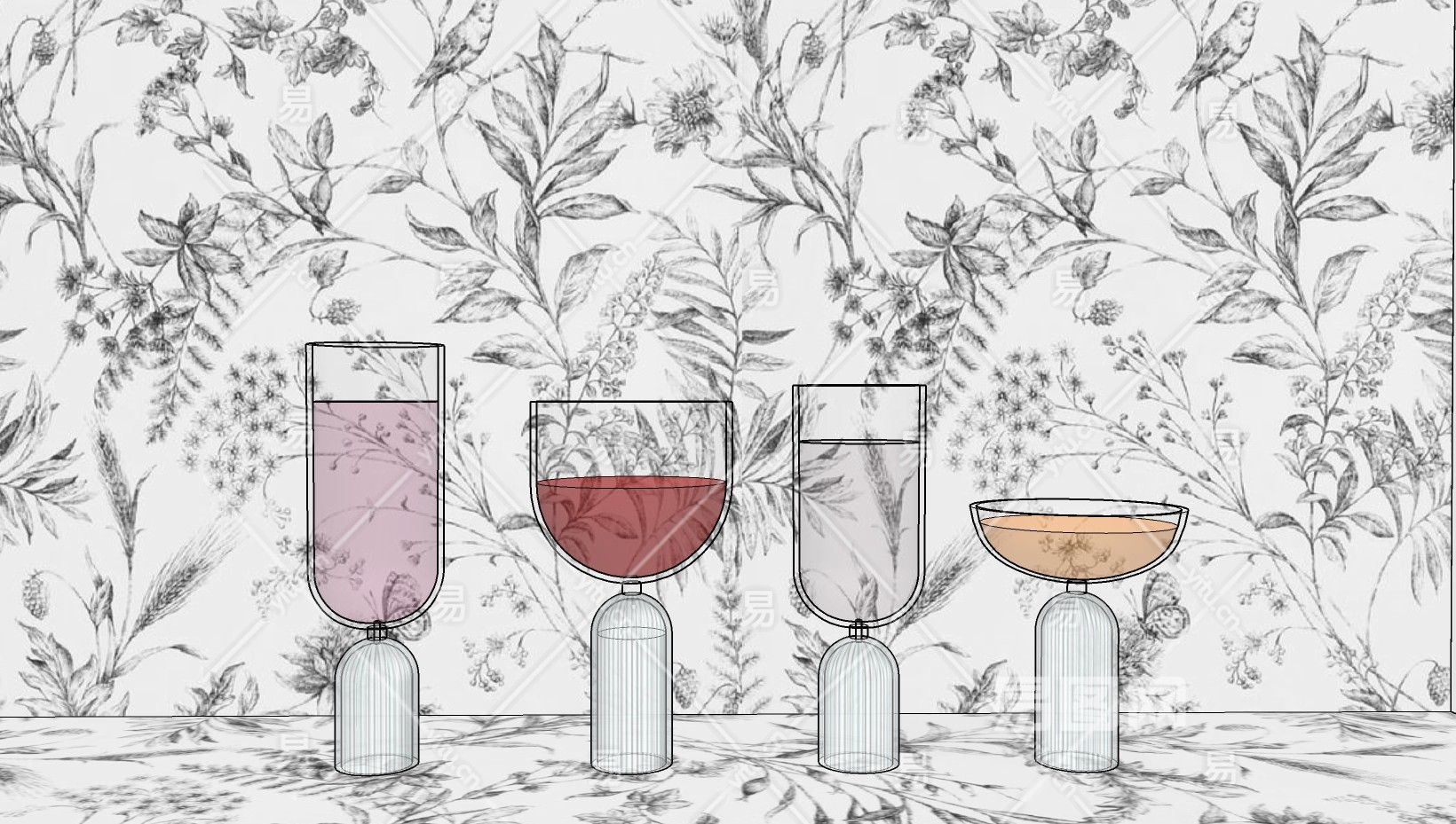 异形装饰酒杯 红酒 洋酒 su草图模型下载
