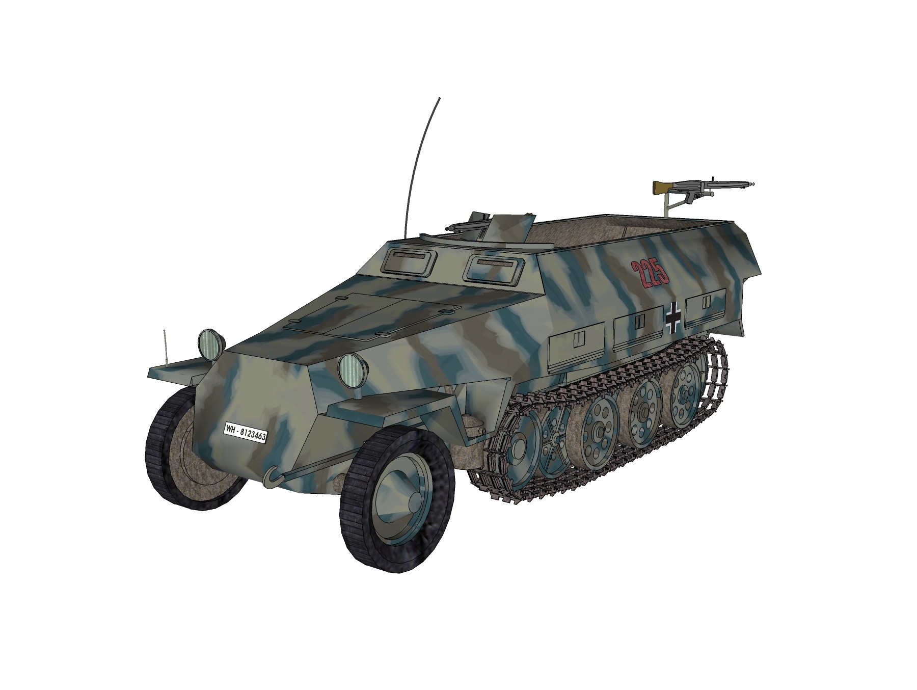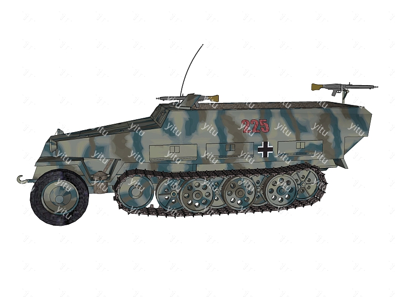 德国Sdkfz-251半履带轻型装甲输送车su模型,运输车草图大师模型下载