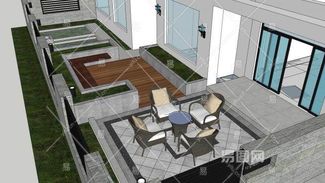 现代别墅庭院花园景观SU模型下载_sketchup草图大师SKP模型