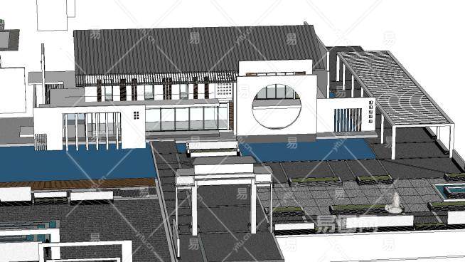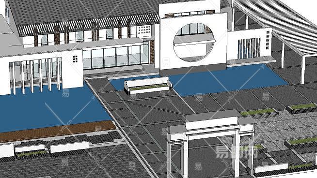 江阴五云桥项目住宅别墅景观联排高层公建新中式书院广场水景SU模型下载_sketchup草图大师SKP模型