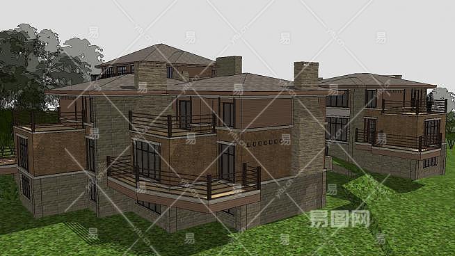 草原风民宿独栋别墅SU模型下载_sketchup草图大师SKP模型