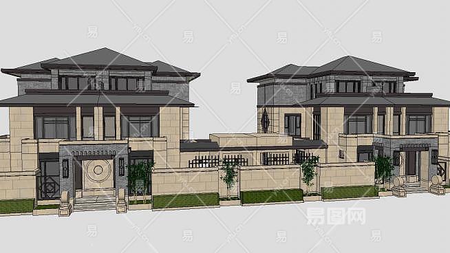 新中式独栋别墅SU模型下载_sketchup草图大师SKP模型