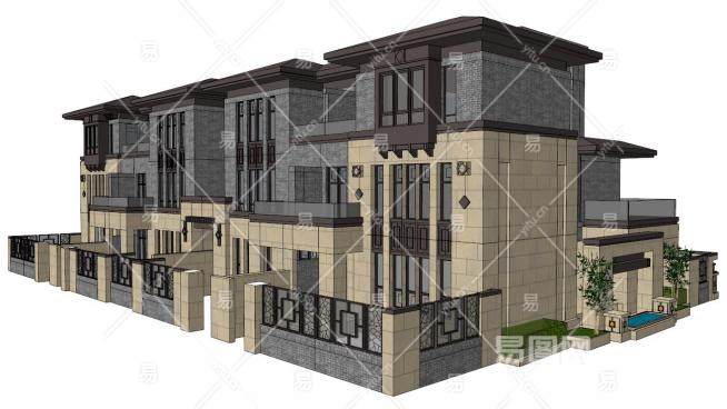 别墅三层su模型下载_sketchup草图大师SKP模型