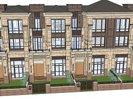 法式四建筑联排别墅SU模型下载_sketchup草图大师SKP模型