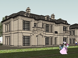 法式独栋别墅su模型免费下载,别墅sketchup模型分享