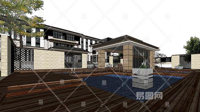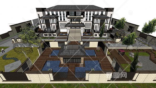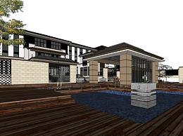 新中式别墅建筑sketchup模型下载_sketchup草图大师SKP模型