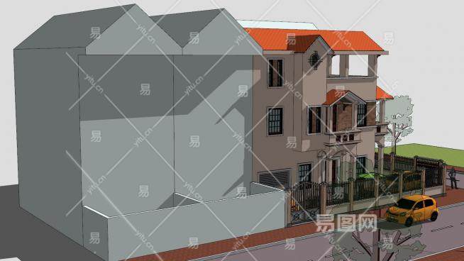 欧式住宅别墅三层楼房SU模型下载_sketchup草图大师SKP模型