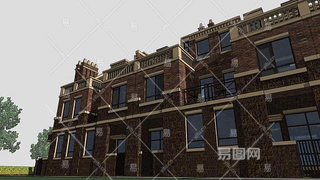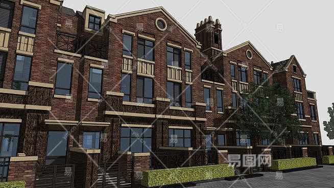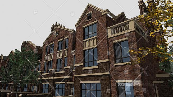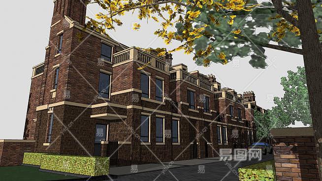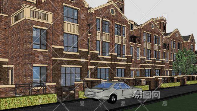 英式风格联排别墅SU模型下载_sketchup草图大师SKP模型