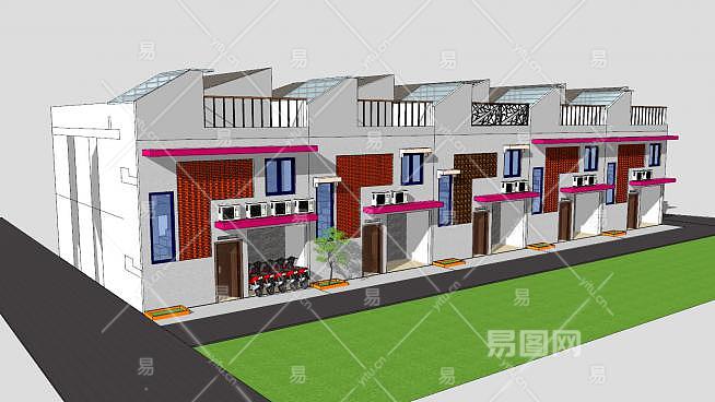 联排别墅建筑sketchup模型下载_sketchup草图大师SKP模型
