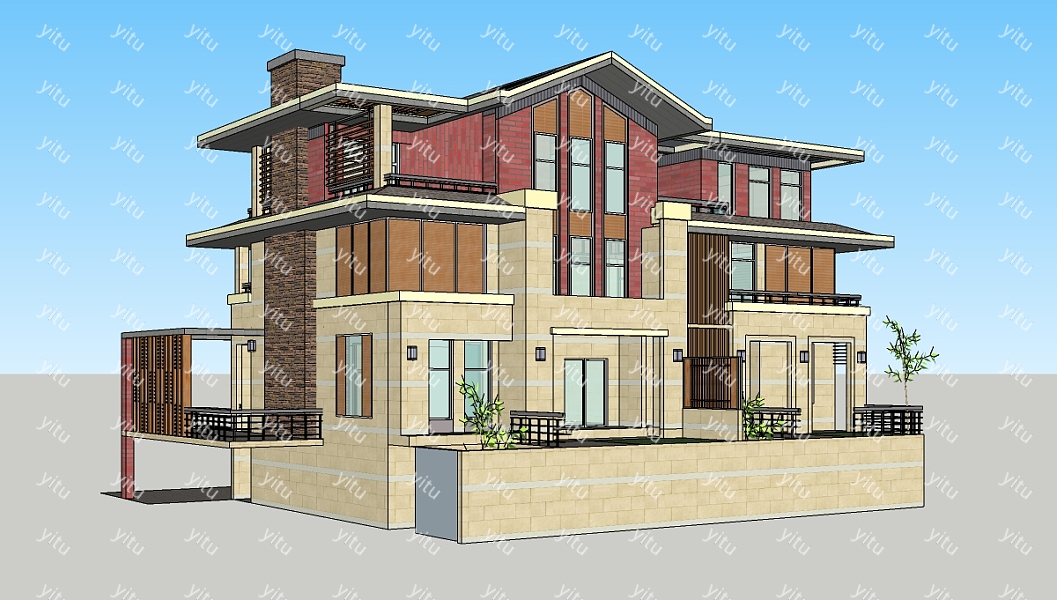 • 自然风别墅外观su模型下载,别墅居住草图大师模型分享