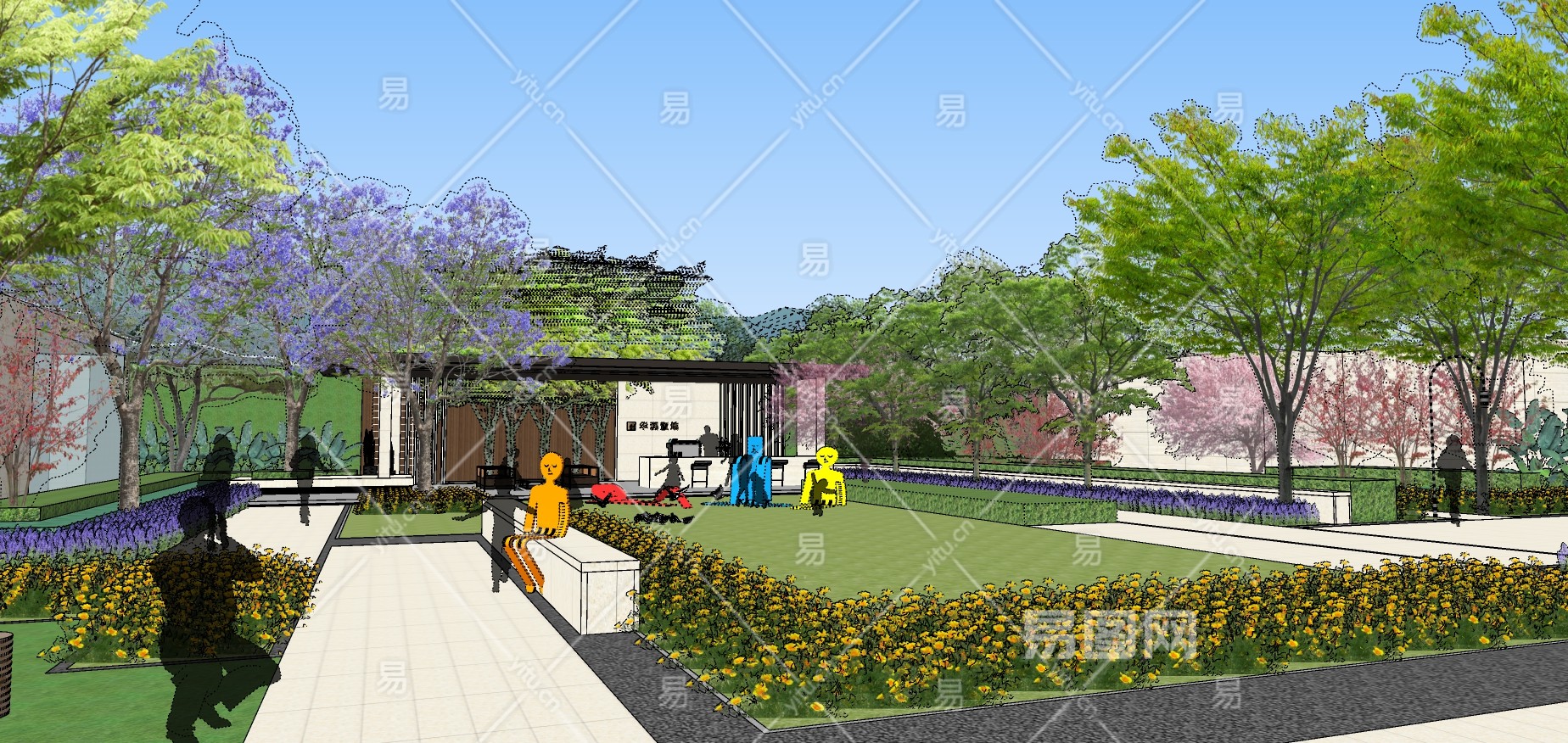 360新中式售楼处设计方案,售楼处庭院景观,入口景观,海豚美人鱼鲸鱼水池景观,新中式门头立面,新中式高档会所,公园景观规划设计,公园入口(1))su草图模型下载