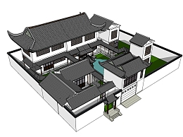 25中式古建四合院,中式风格四合院,江南四合院,庭院凉亭,中式别墅,民宅,民宿(2)su草图模型下载