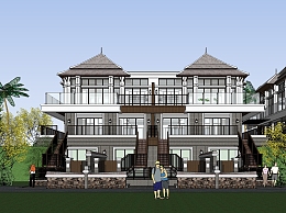 泰式独栋别墅,建筑,椰子树su草图模型下载