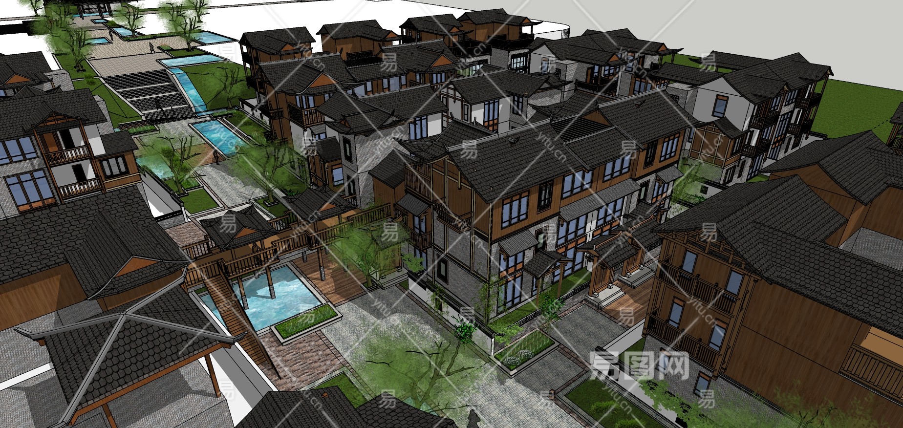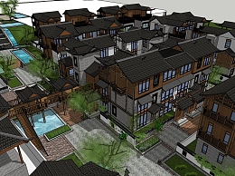 09中式仿古别墅六合院四合院,中式四合院会所,中式庭院景观,中式住宅小区,中式凉亭,牌楼,中式廊桥,度假村,新农村,别墅群su草图模型下载