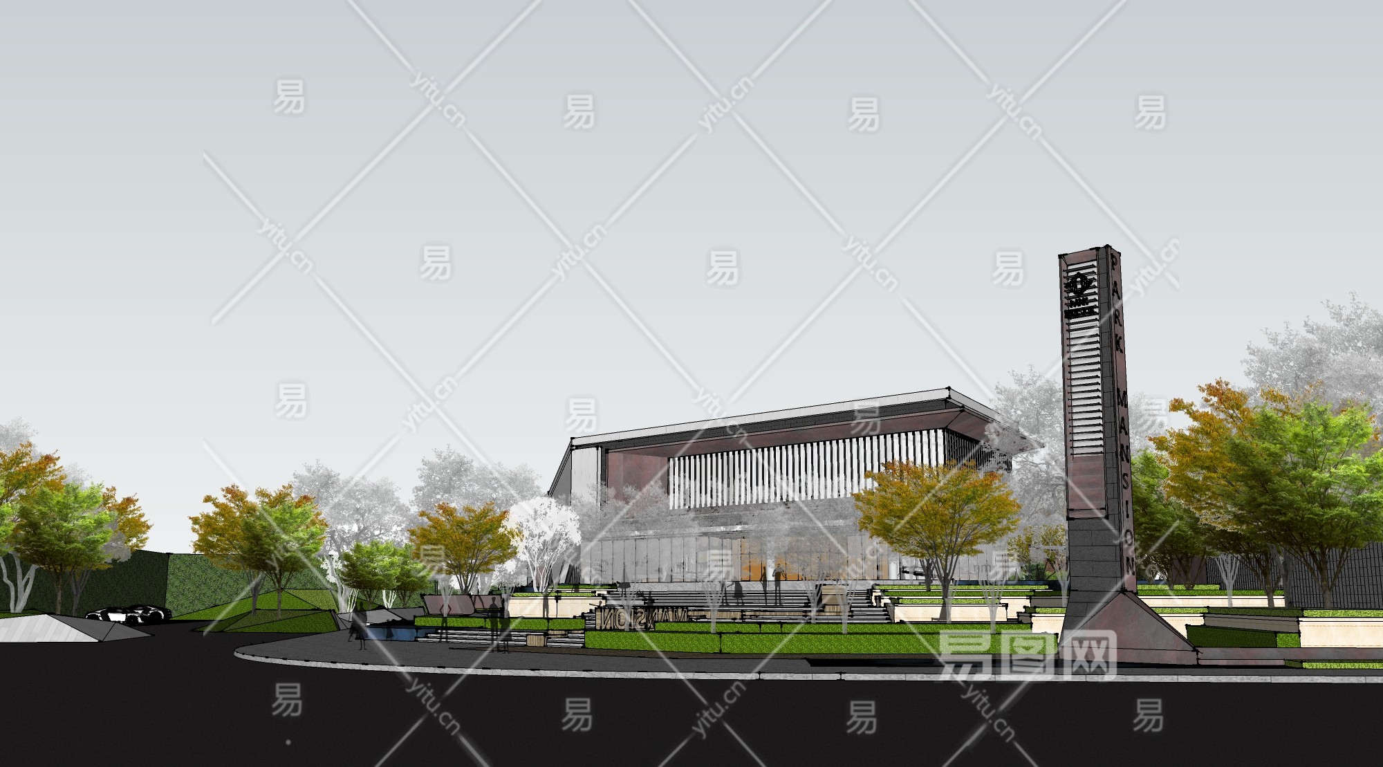 示范区景观,独栋别墅,会所,配景,广场设计,配景树su草图模型下载