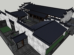 145徽派中式四合院 徽派古典建筑,中式别墅会所,庭院景观(1)su草图模型下载