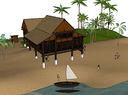 东南亚风格别墅su模型下载、东南亚风格别墅草图大师模型下载