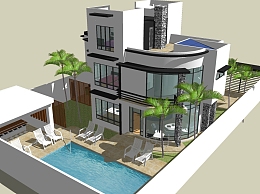 现代别墅草图大师模型,别墅泳池sketchup模型下载