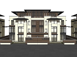 欧式联排别墅sketchup模型,别墅su模型下载