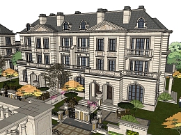 欧式联排别墅sketchup模型,别墅skb文件下载