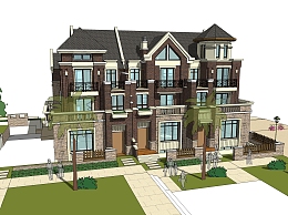 欧式联排别墅su模型,别墅sketchup模型下载