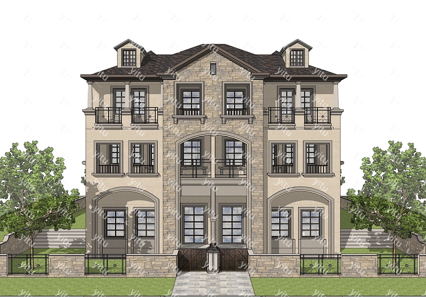 当前的位置:首页 > sketchup > sketchup模型 > 建筑 > 别墅居住 > 欧式联排别墅su模型,别墅sketchup模型下载