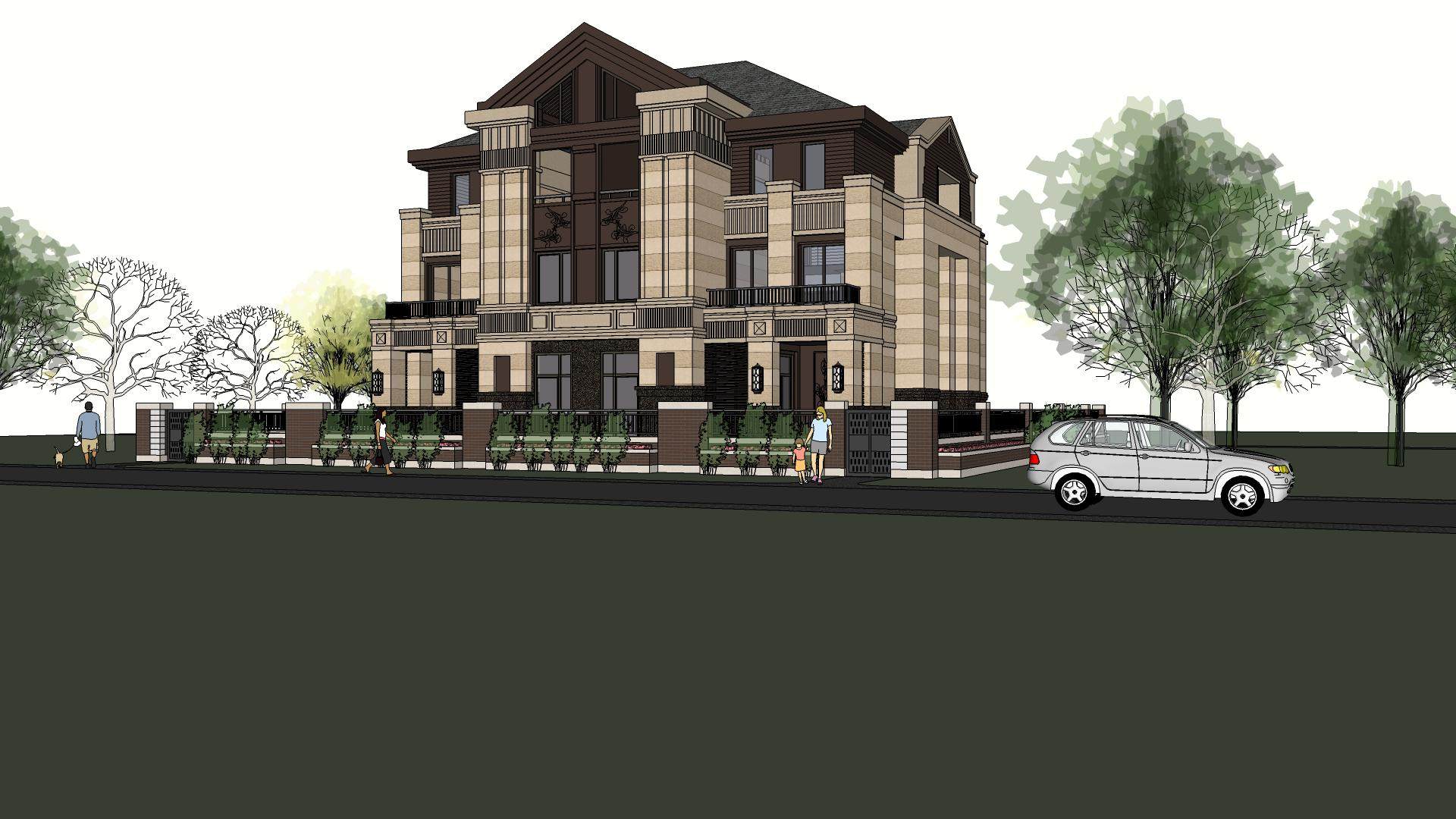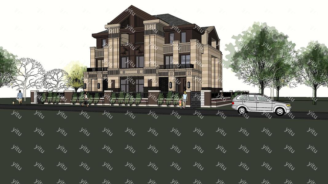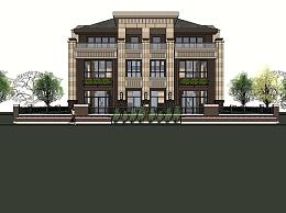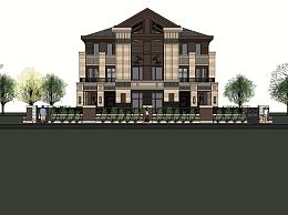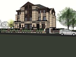 欧式联排别墅su模型,别墅sketchup模型下载