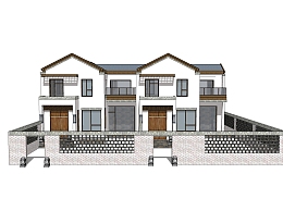 现代联排别墅su模型,别墅草图大师模型下载