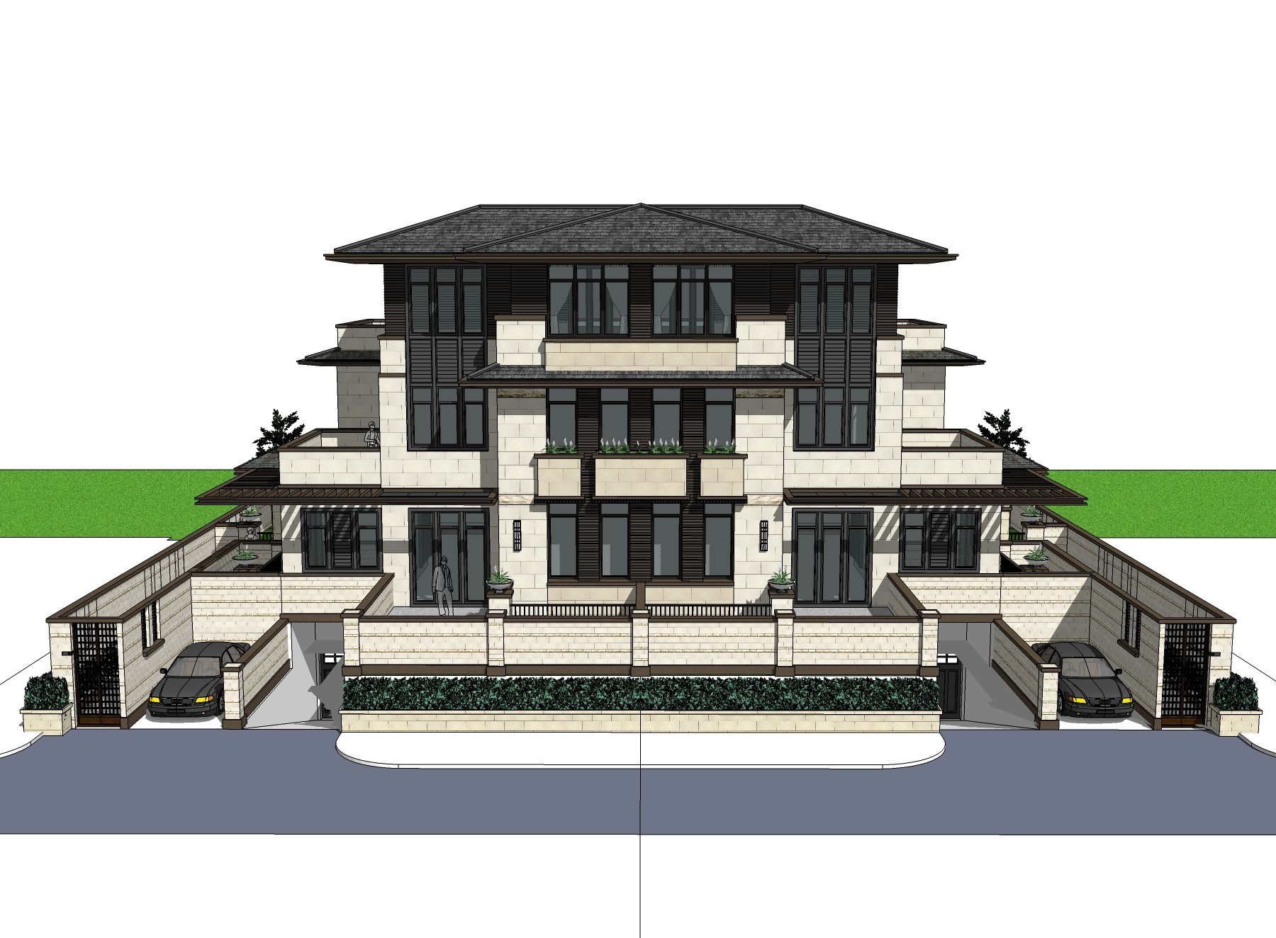 当前的位置:首页 > sketchup > sketchup模型 > 建筑 > 别墅居住 > 中式联排别墅su模型,别墅skp模型下载