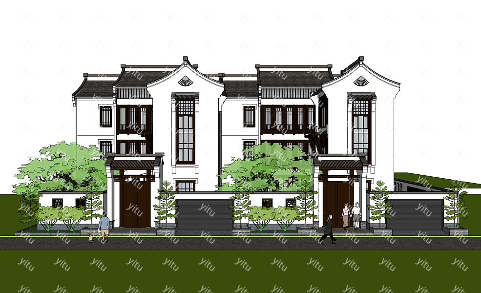 当前的位置:首页 > sketchup > sketchup模型 > 建筑 > 别墅居住 > 中式联排别墅su模型,别墅草图大师模型下载