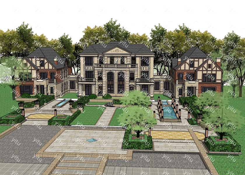 欧式别墅su模型,别墅sketchup模型下载